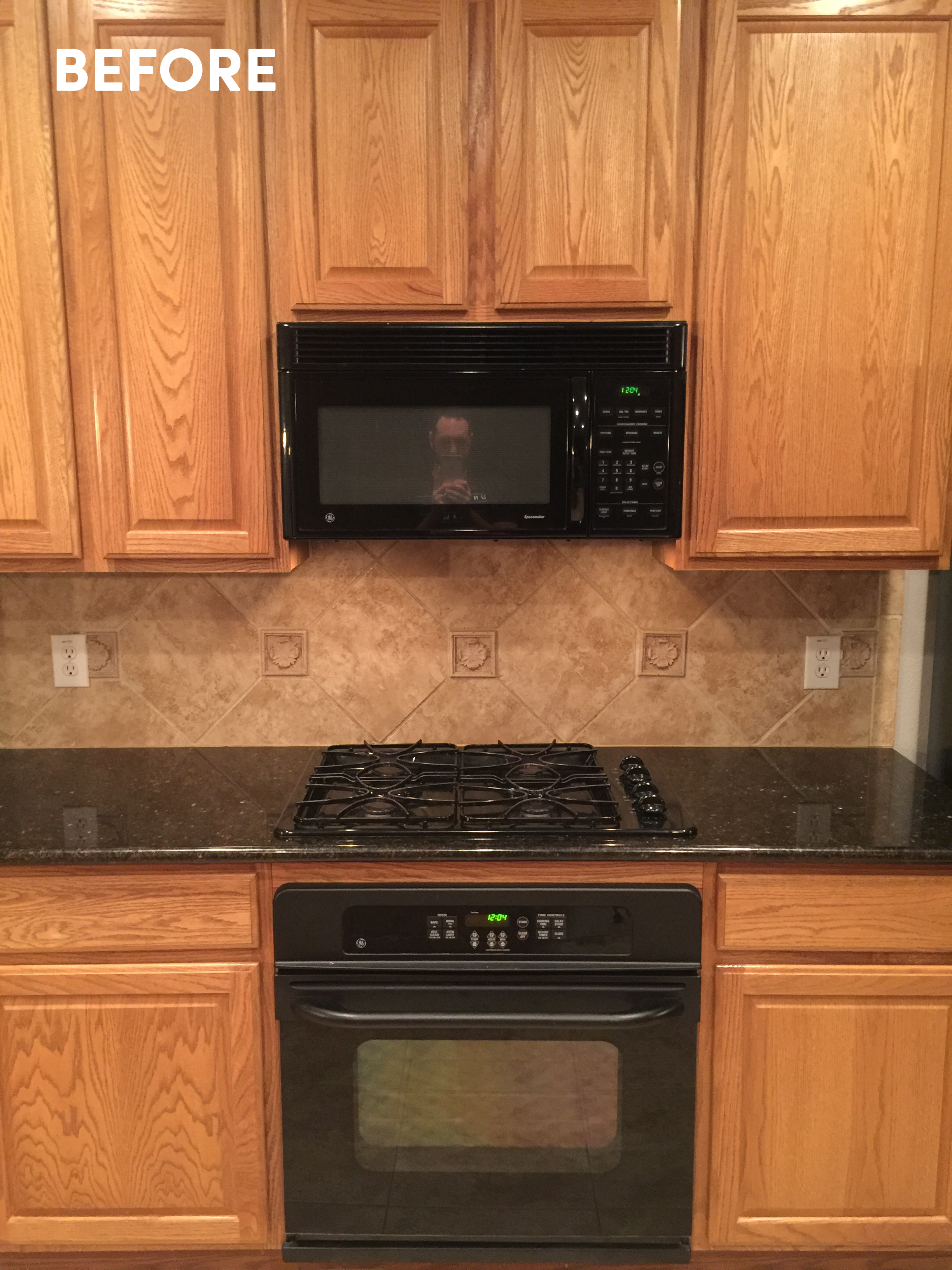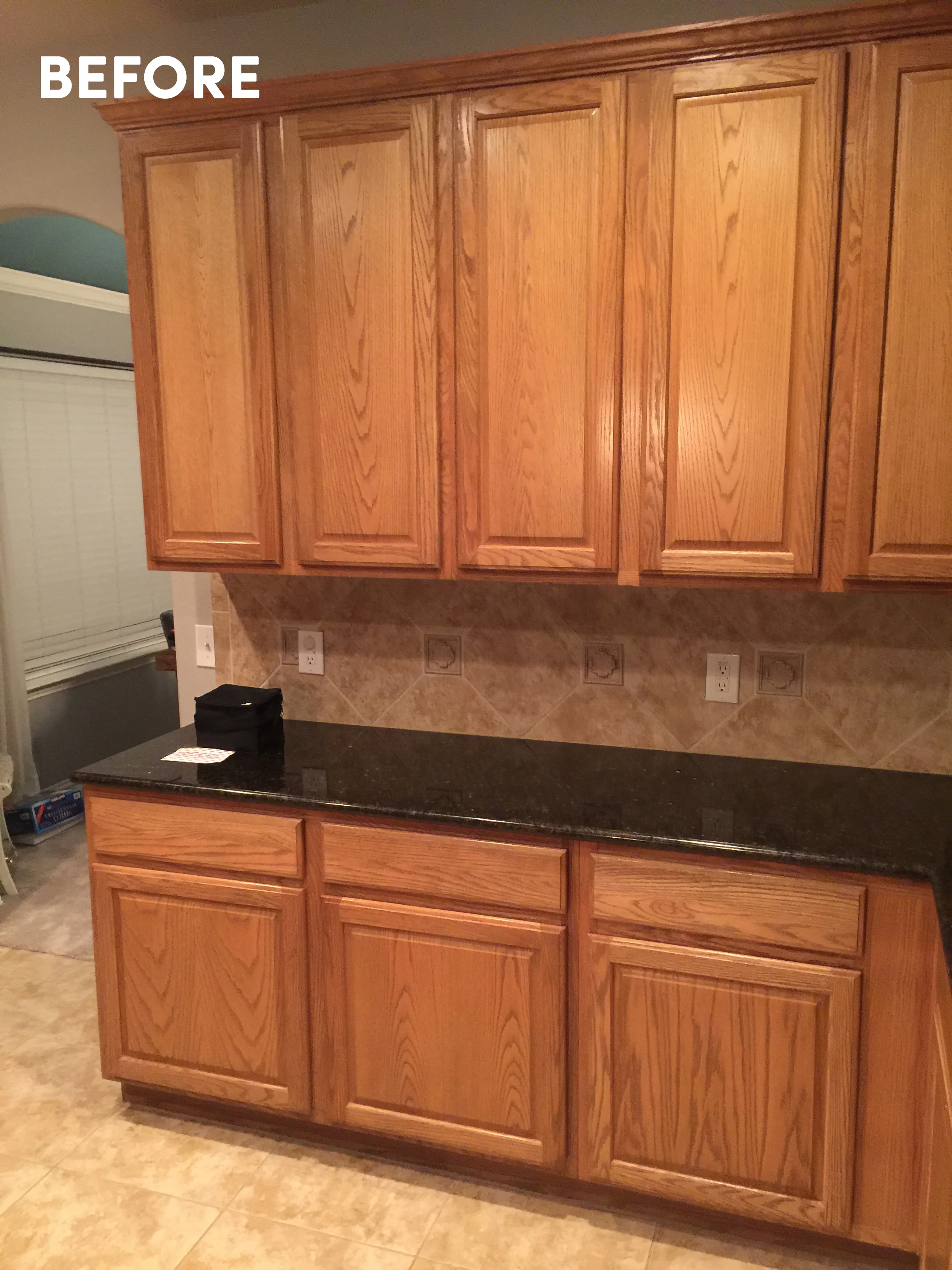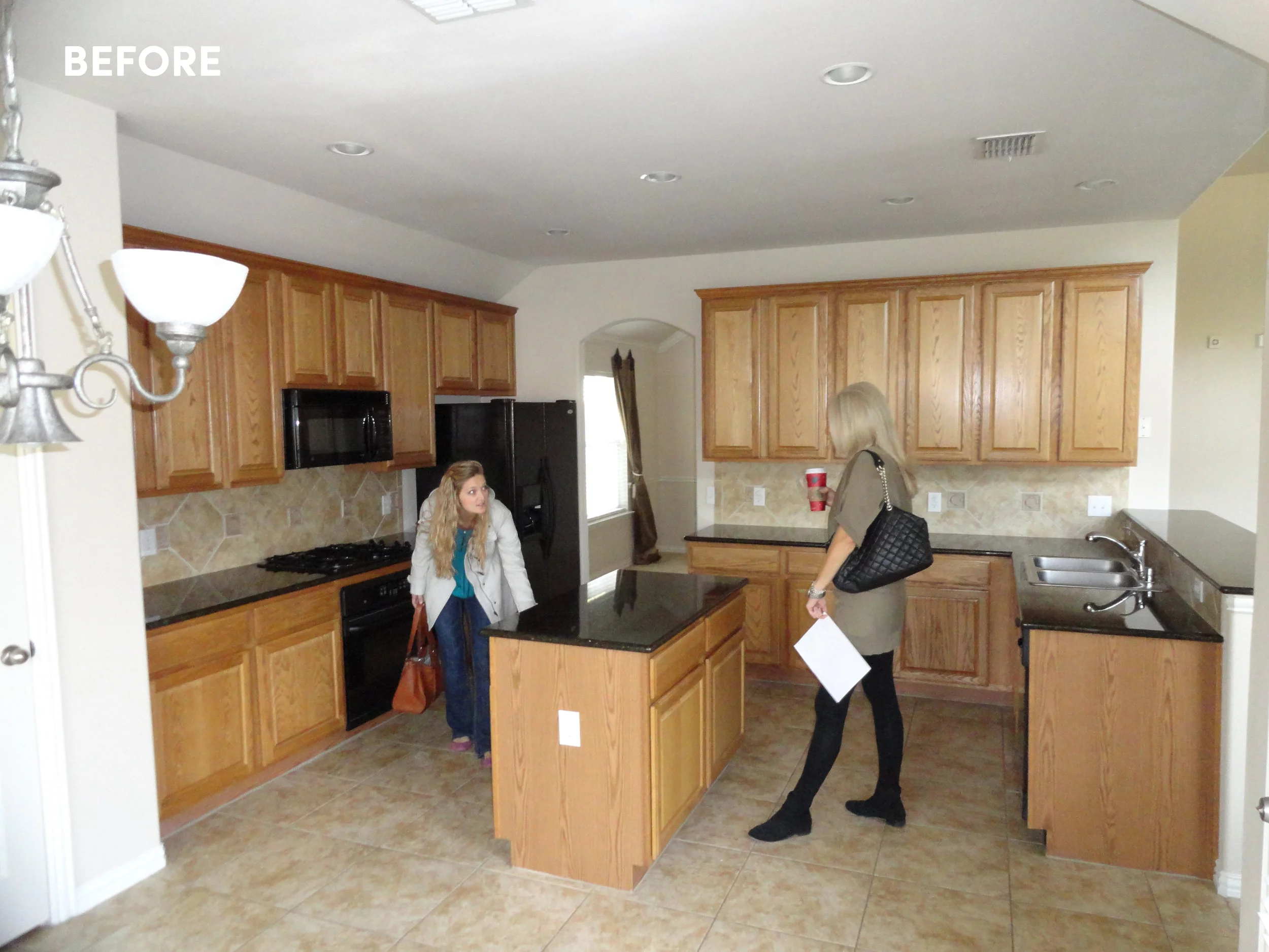 So in four days, their kitchen went from this sea of blah of beige and tan: